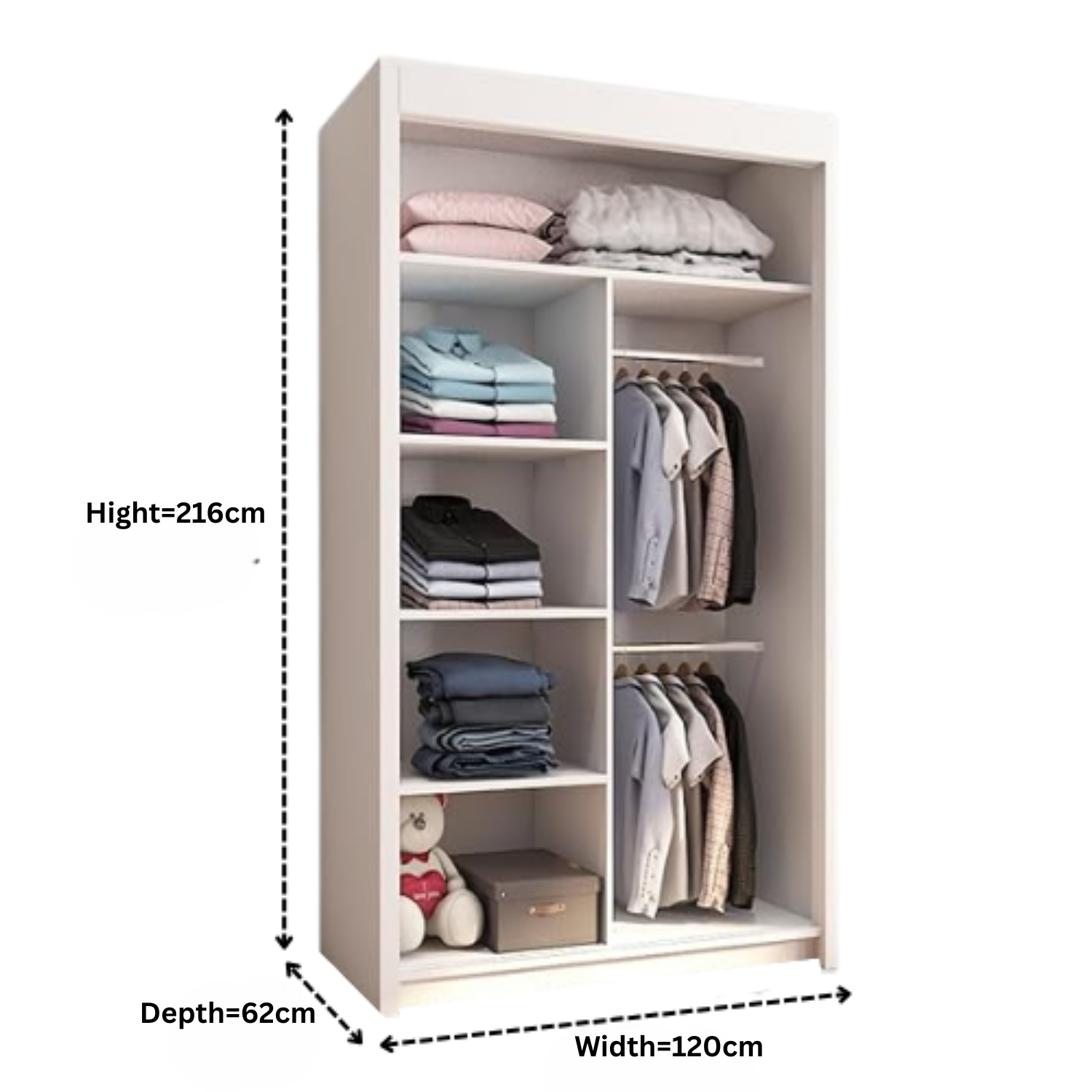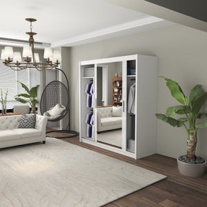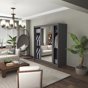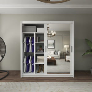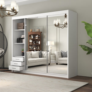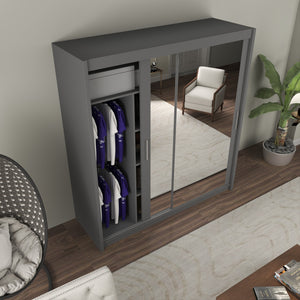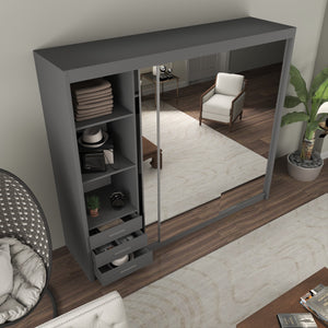 Each wardrobe size offers a well-designed interior with a mix of shelves and hanging sections, allowing you to store folded clothes, accessories, and hanging garments neatly.Mirror Functionality: