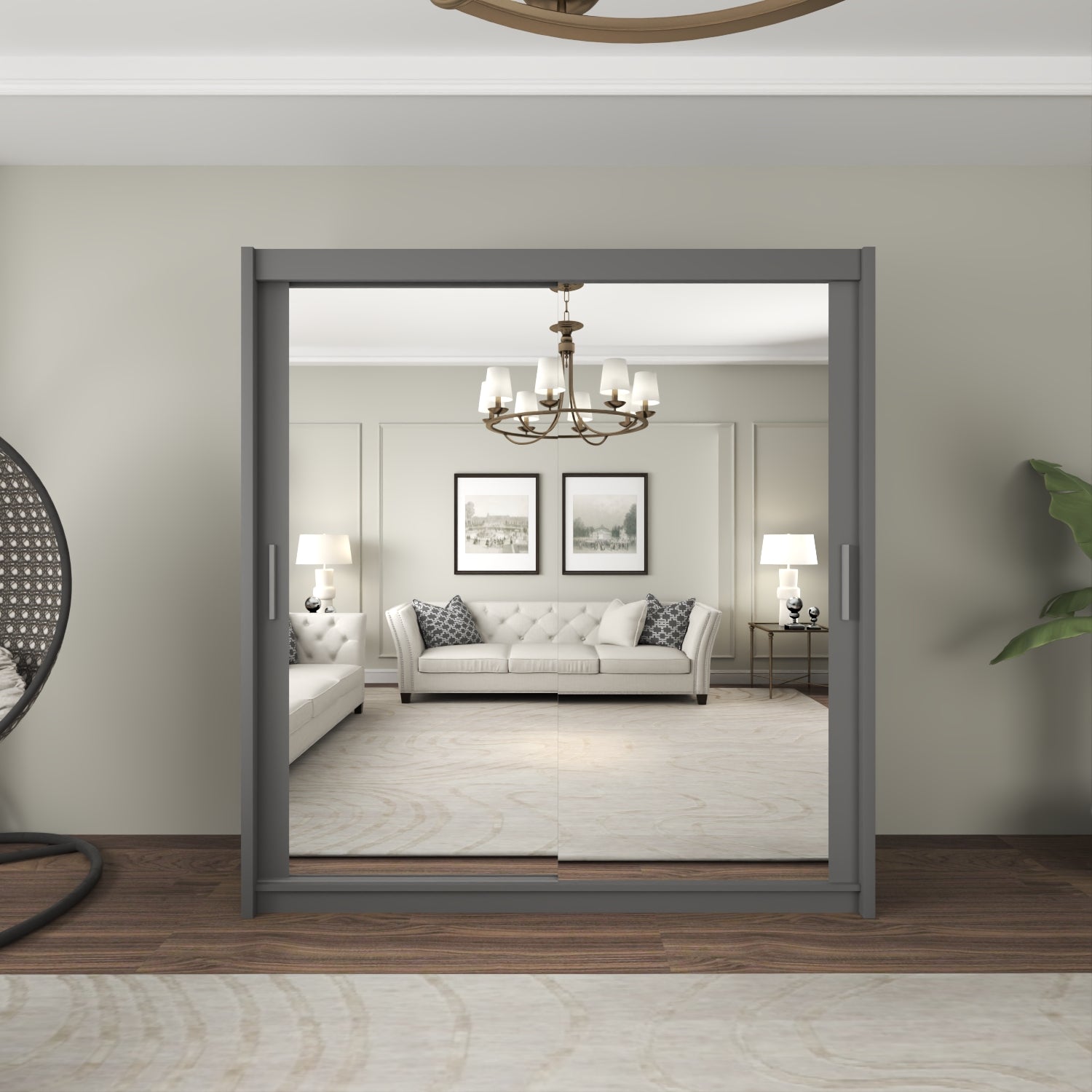 AT Furniture Modern 2-Door Sliding Mirror Wardrobe