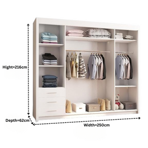 • 250 cm: Width 250 cm | Height 216 cm | Depth 62 cm