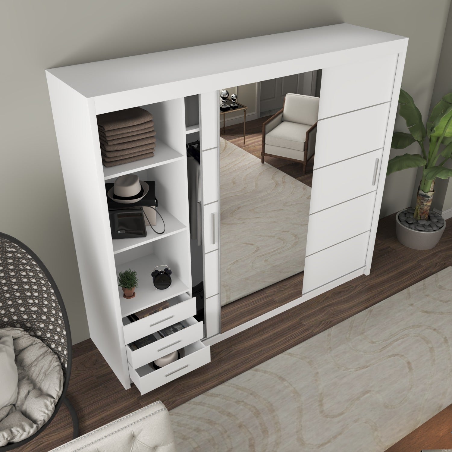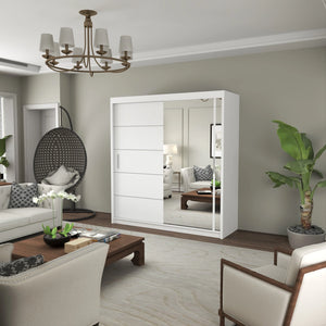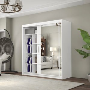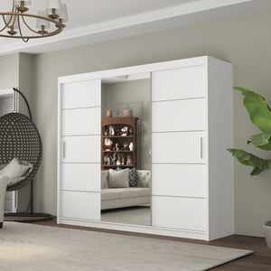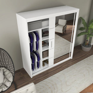 The AT Furniture Vision Mirrored Sliding Door Wardrobe combines modern design with everyday practicality, giving you a stylish and functional storage solution. Its elegant matte white finish, generous shelving, and spacious hanging sections make it a perfect fit for any bedroom.