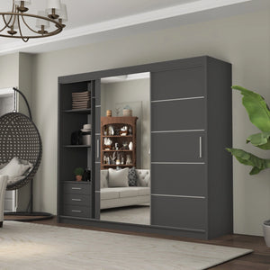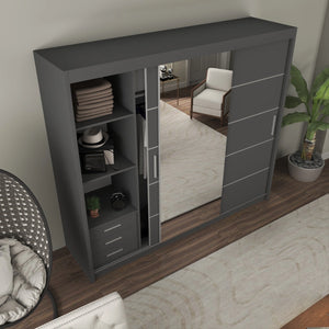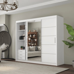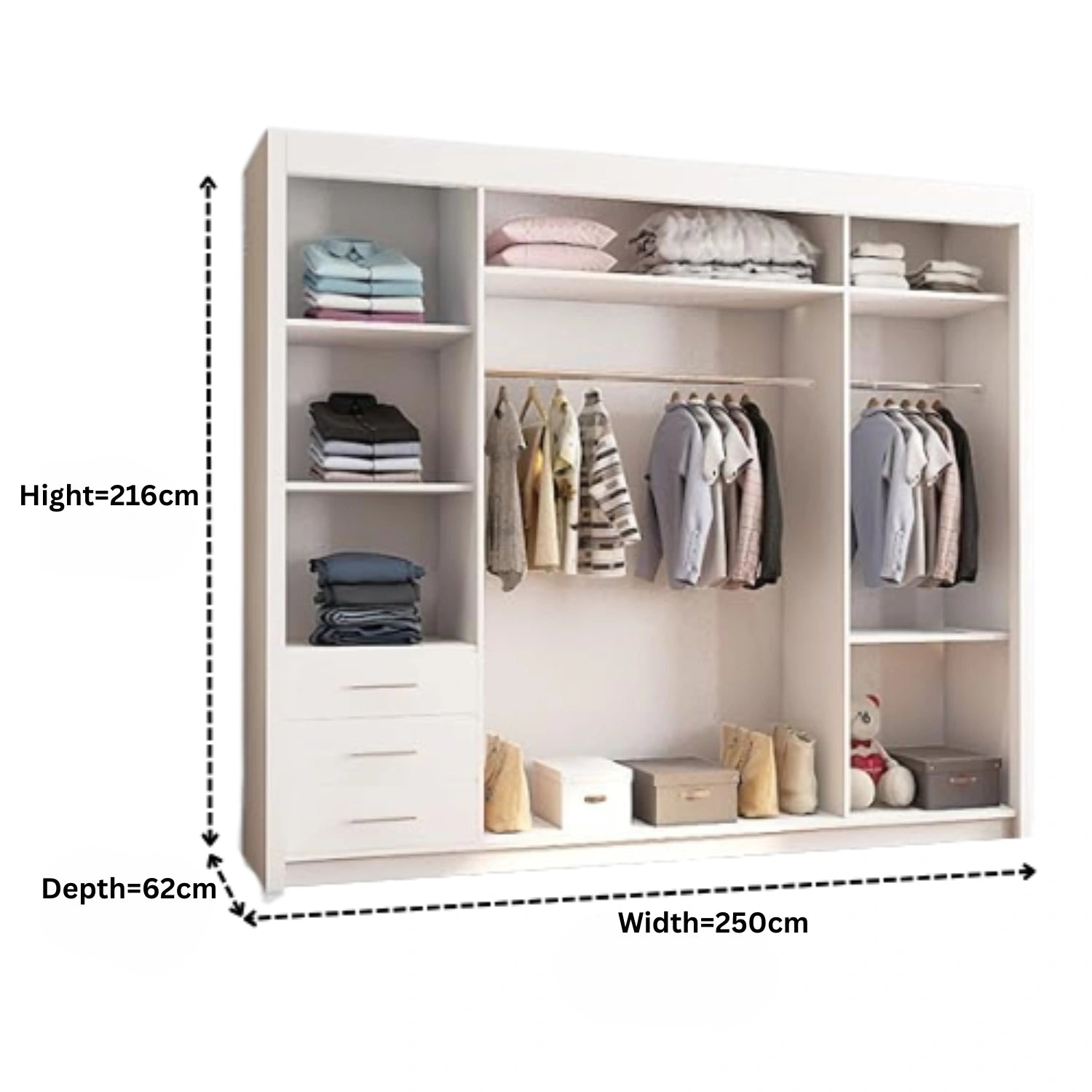 Each wardrobe includes premium mirrors on the doors, adding both style and function. They reflect light beautifully while serving as a full-length dressing mirror.Storage Space: