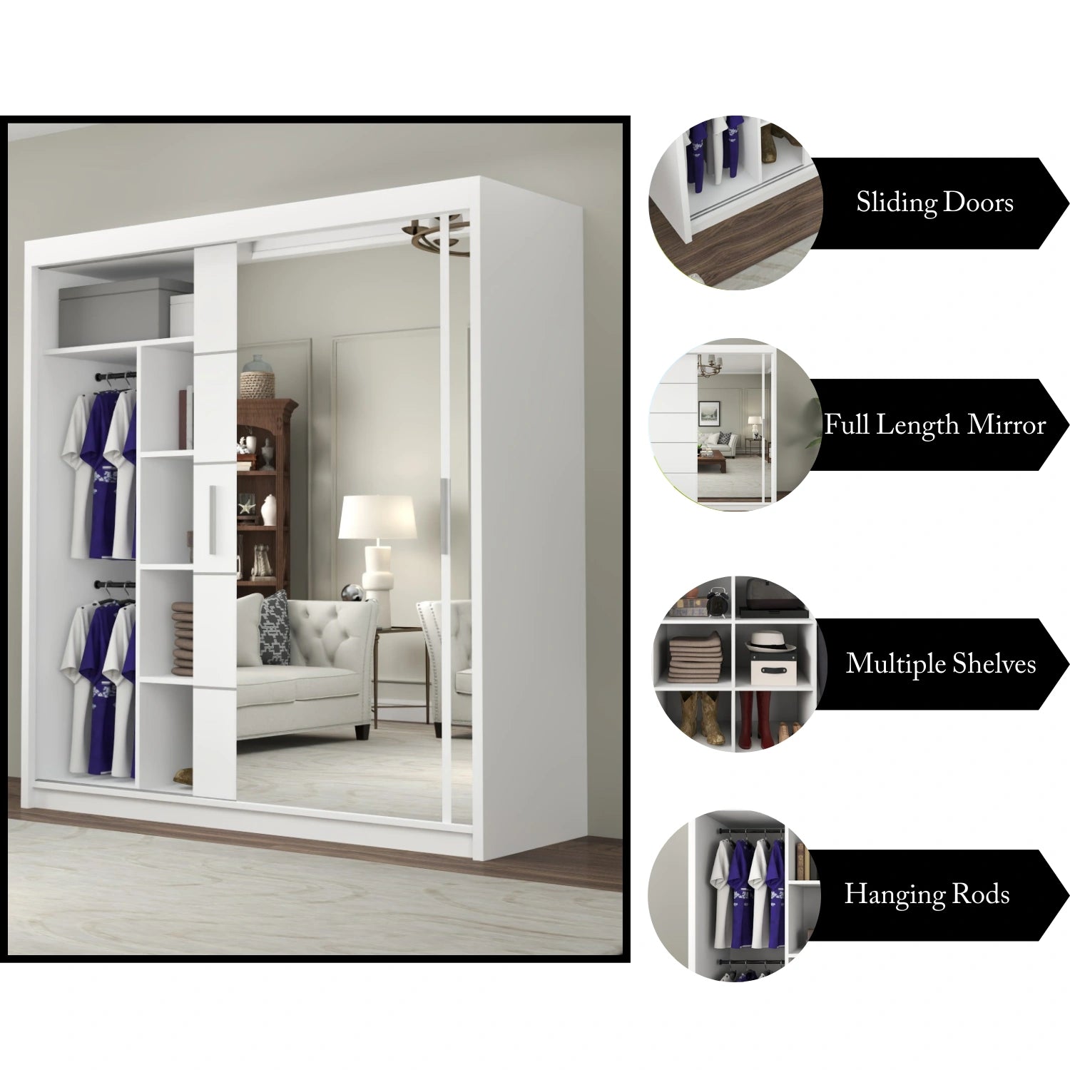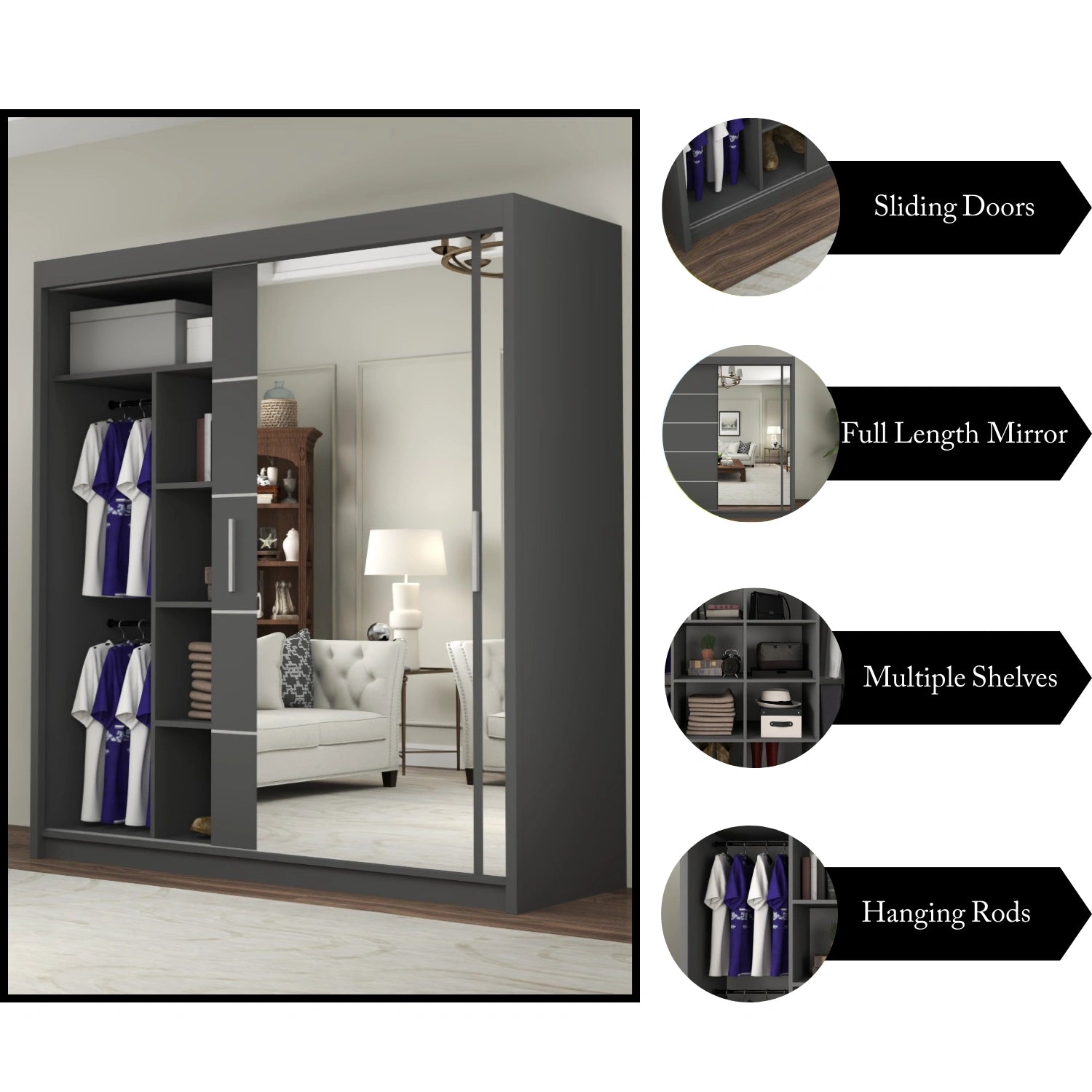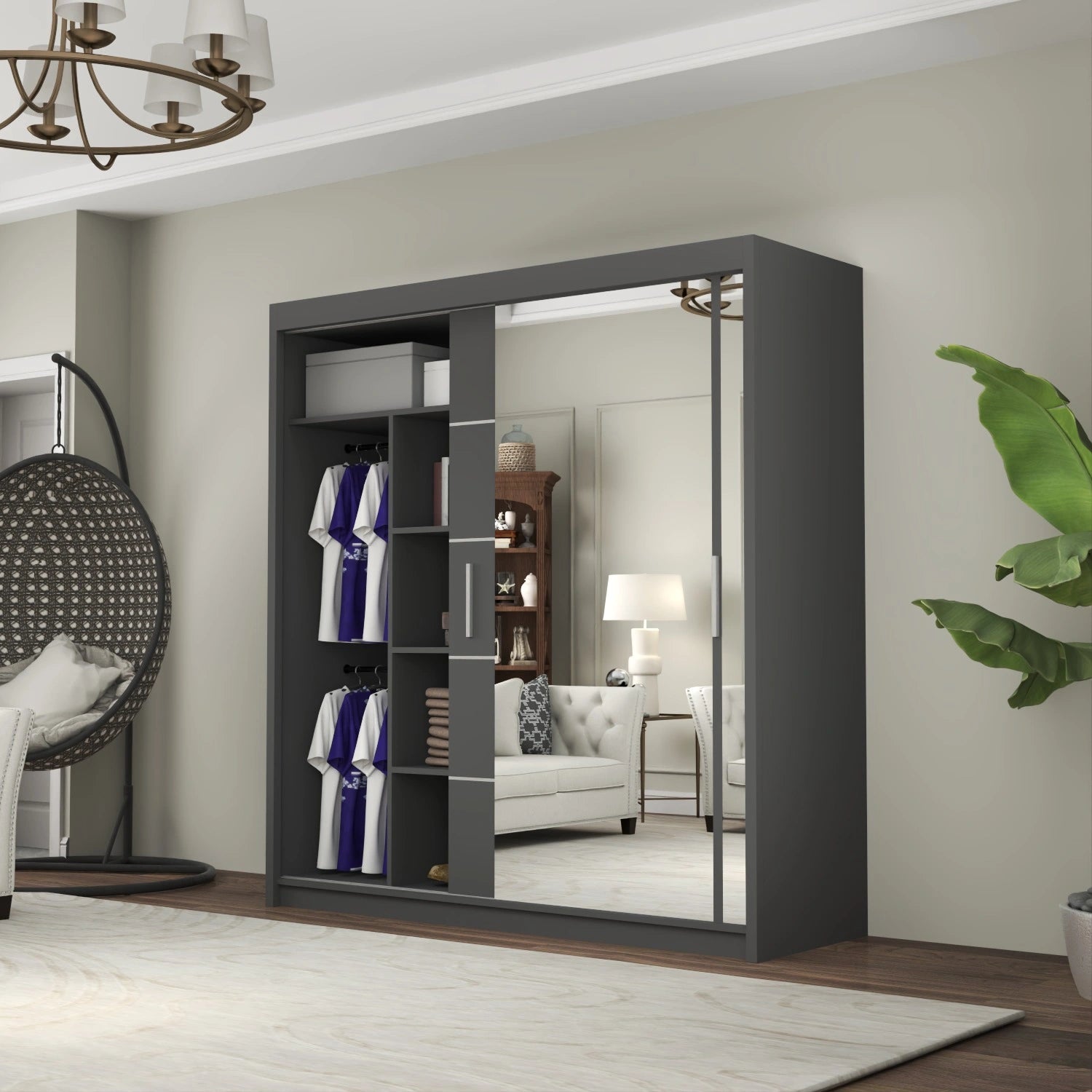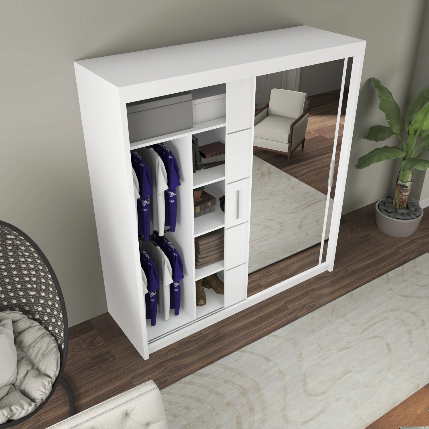 Crafted from high-quality MDF chipboard, the wardrobe features a durable laminated matte finish for a clean, modern look.Sliding Doors:
